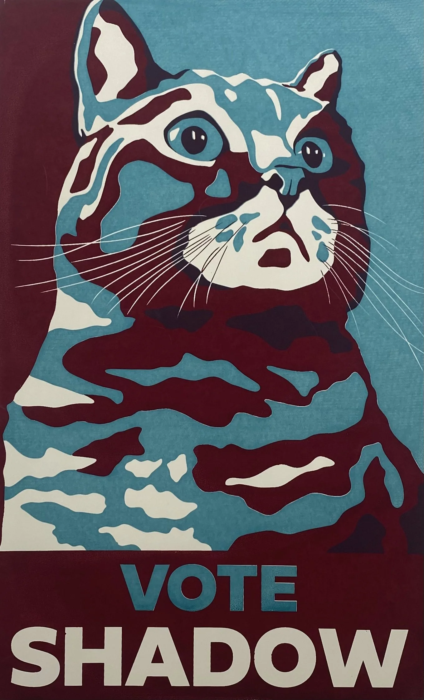 Part of the “Paw-litical” parody series. Shadow is my roommate’s tabby cat and the second candidate in the election putting an end to the everlasting “cats vs. dogs” feud.
