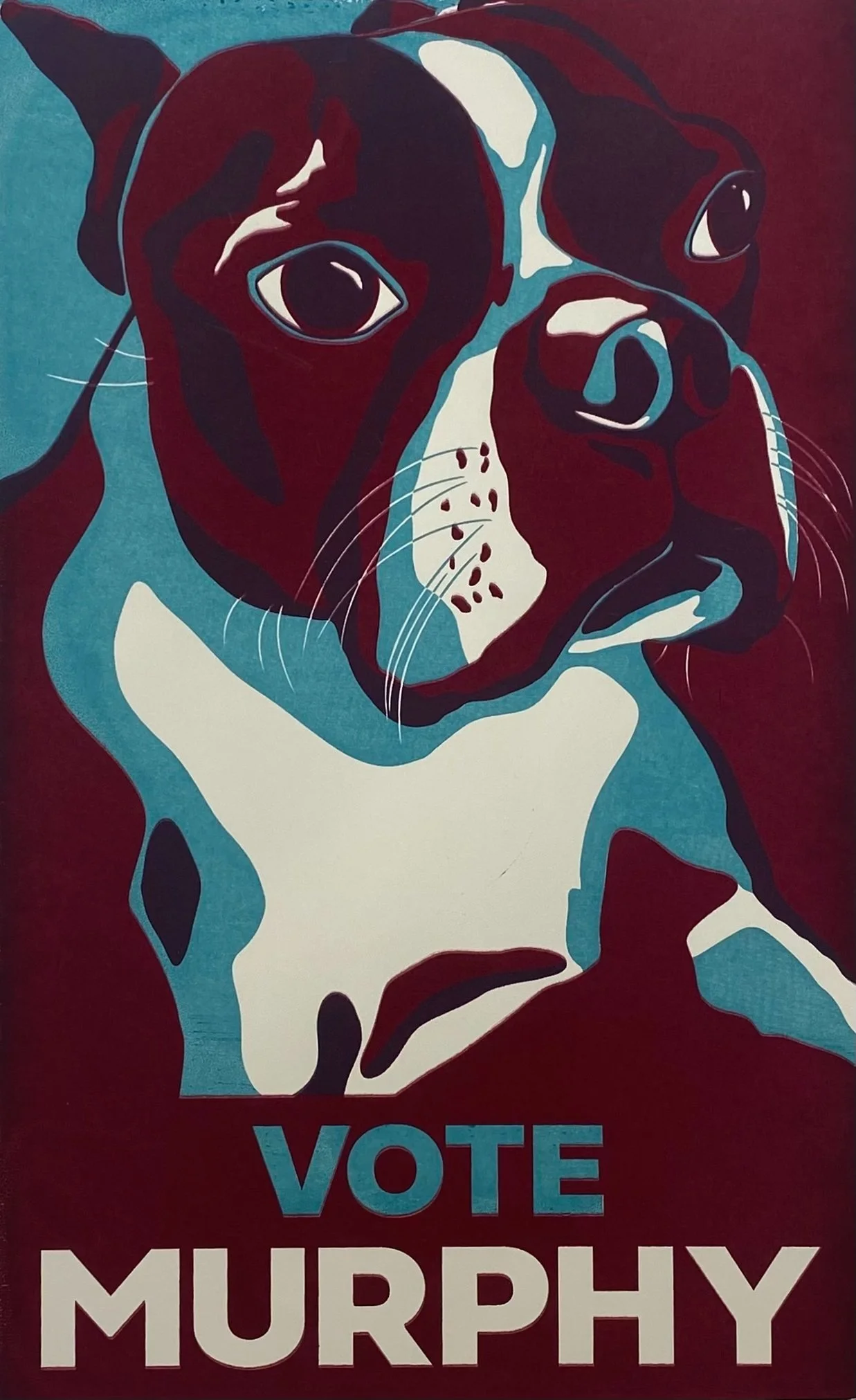 Part of the “Paw-litical” parody series. Depicting my Boston Terrier Murphy as he campaigns against his running mate Shadow in the long running feud, of “cats vs. dogs.”